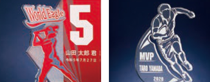 一個からオリジナルトロフィをリーズナブルに製作致します。厚手のアクリルが主な材料です。